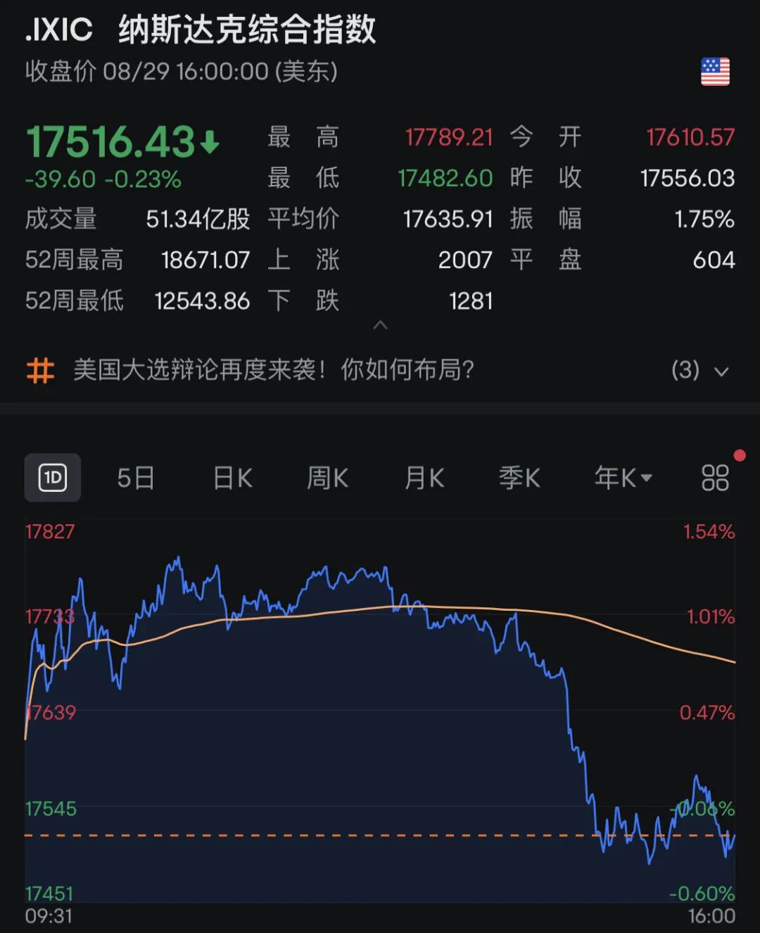 在一度涨逾1%之后,纳斯达克指数在尾盘突然跳水翻绿。